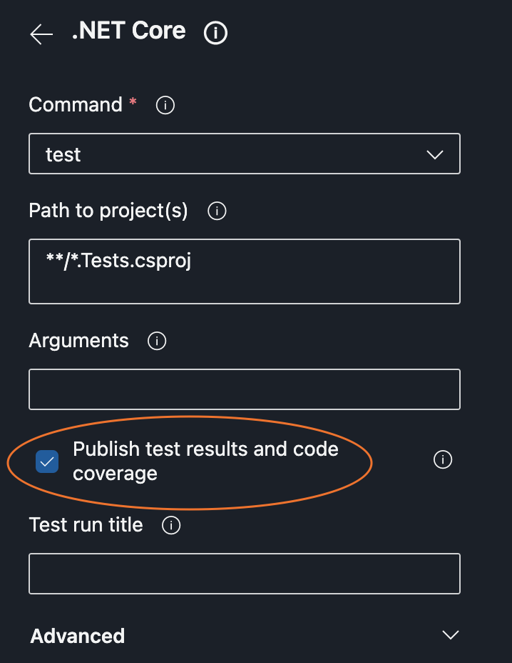 However, if you read the information on the publishTestResults argument from the .NET Core CLI task (or clicking on the (i) on the Publish test results and code coverage option in the task assistant), it says:
