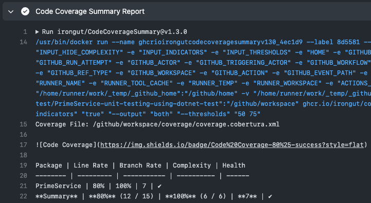 You’ll notice the badge along with the markdown table summarizing the code coverage report.