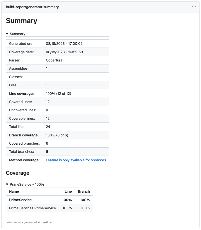 I think this is looking great, but what if we don’t happen to create a pull request, how can we neatly see our code coverage report? Well, since May 9, 2022 (and GitHub Enterprise Server >= 3.6.0) we can use the Job Summary!