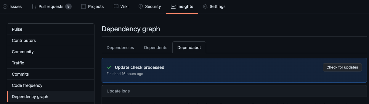 We can also look at our Dependabot logs: