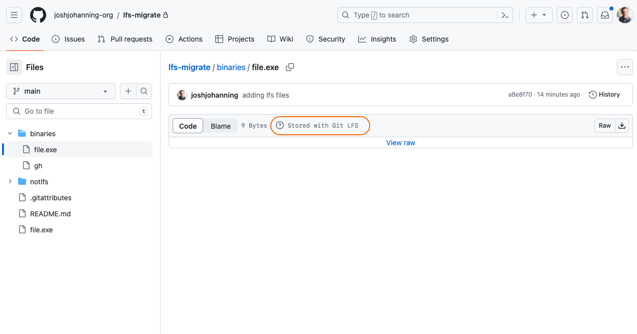 Here is an example of migrating a repository that contains LFS artifacts: