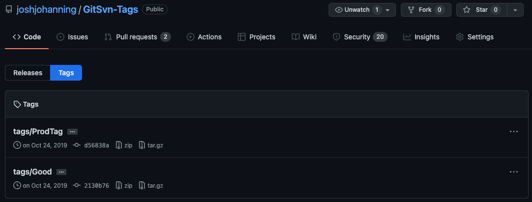 This is what you can expect tags to look like in GitHub after running the migration (as tags):